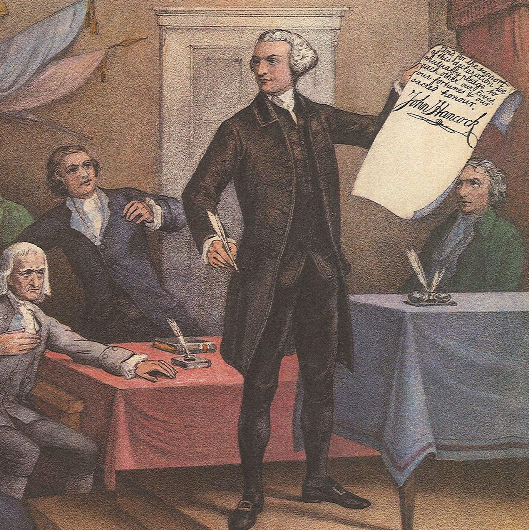 After the first battle, Hancock returned to Philadelphia, where he was elected president of the Second Continental Congress. During his time as president, committees were formed to aid the revolution, including the Marine Committee, which was responsible for creating the first U.S. (United States)—Navy fleet. In 1776, Hancock oversaw the creation of the Declaration of Independence. Produced by the 'Committee of Five," the Declaration of Independence, the document declared the colonies separate and independent from Great Britain. On July 4, 1776, John Hancock was the first to sign the document with a large cursive signature, stating, "There, John Bull (England) can read my name without spectacles; he may double his reward." Hancock continued to serve as president of the congress until 1777 when he left and took the position as governor of Massachusetts, where he served until 1785. After the American Revolution, Hancock's reputation flourished due to his philanthropy during and after the war.